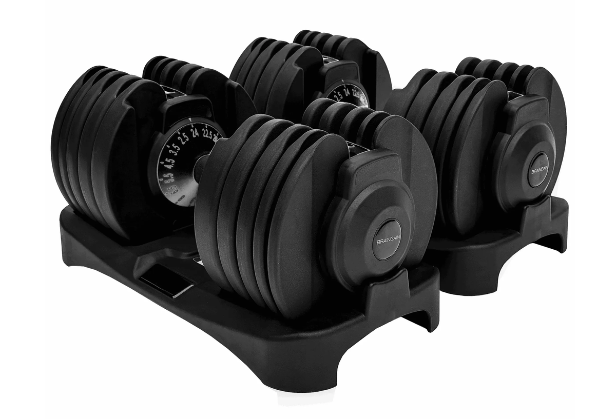 The BRAINGAIN 24kg Adjustable Dumbbells cover 15 weights in one dumbbell, letting you change from 2.5kg to 24kg with a simple twist of the dial making it a space, time and money saver. The innovative 24kg Adjustable Dumbbells are the perfect dumbbell for your home gym set up, whether you’re looking to train in your garage or your living room, removing the need for a full rack of dumbbells and can be used to build, strengthen and tone your entire body.